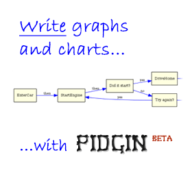 Use Pidgin for faster Flowcharts and Relationship Diagrams Pidgin makes Flowcharts and Relations Diagrams fast and easy: just describe them and pidgin draws them for you.